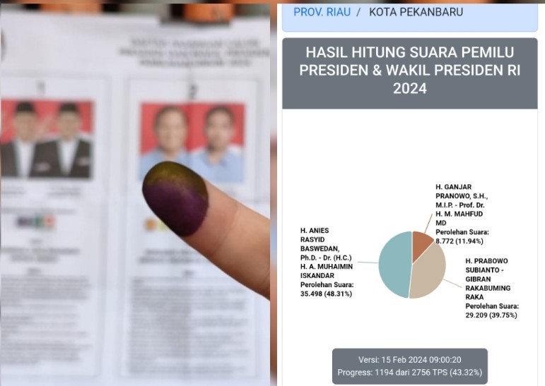Real Count KPU 43,32% di Pekanbaru: Anies Ungguli Prabowo, Ganjar Cuma 11,94%