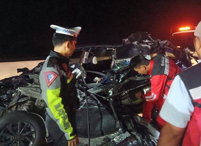 "Jadi mereka 1 mobil itu ada 4 orang, yang meninggal dunia ada 1 orang. Kemungkinannya mereka hendak mudik, dilihat dari plat nomor polisi mereka dari luar daerah," pungkasnya.(clc)