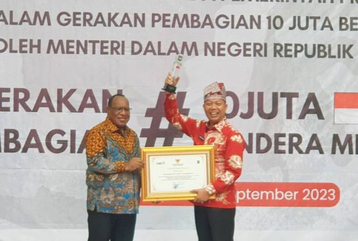 Ia mengatakan ini sebagai bentuk penghargaan dari Kemendagri untuk kepala daerah yang dianggap mensukseskan pembagian 10 juta bendera dalam rangka hari kemerdekaan RI ke-78.