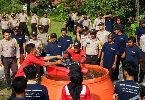 Kapolres Pelalawan, AKBP Hasyim Risahondua mengatakan, kegiatan ini merupakan bentuk berkolaborasi dengan PT Riau Andalan Pulp and Paper (RAPP) dalam upaya pengendaian Karhutla.