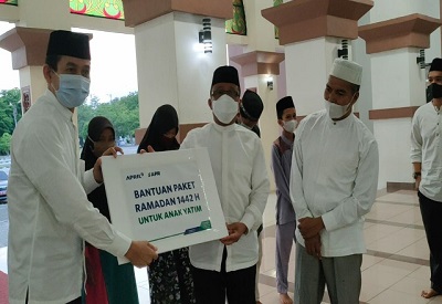 SIAK – Menumbuhkan kepedulian dan berbagi kepada sesama, PT Riau Andalan Pulp and Paper (RAPP) dan PT Asia Pacific Rayon (APR) memberikan santunan kepada 600 anak yatim di Kabupaten Siak. Penyerahan santunan tersebut dilakukan di Masjid Sultan Syarif Kasim atau Islamic Center, Siak, Rabu (28/4/2021).