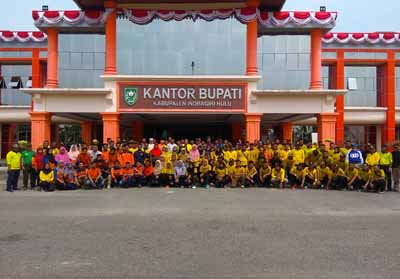 INHU, WARNARIAU.COM - Bupati Inhu, Kapolres beserta Dandim 0302/Inhu mengumpulkan seluruh petugas Satpol PP dan BPBD terkait Karhutla yang terjadi di Kabupaten Indragiri Hulu, Kamis (8/8/2019) siang di depan Kantor Bupati.