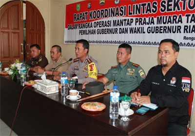 INHU, WARNARIAU.COM - Kapolres Indragiri Hulu (Inhu) AKBP Arif Bastari SIK MH memimpin langsung rapat Koordinasi Lintas Sektoral Ops Mantap Praja Muara Takus 2018 dalam rangka pengamanan Pilkada Gubernur dan Wakil Gubernur Provinsi Riau Tahun 2018, (30/12018) pagi di ruangan Adhi Pradana Polres Inhu.