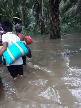 "Sebelum merendam rumah kami, banjir sudah lebih dulu merendam areal pertanian dan kebun kami. Banjir telah meluluh lantakkan mata pencaharian kami", ujar Hardi, warga Desa Suka Jadi, Kecamatan Kuala Cenaku kepada wartawan.