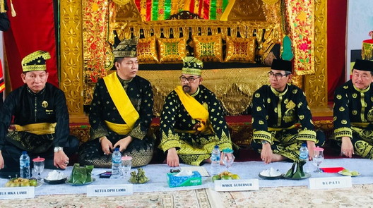 Keduanya terlihat hadir menggunakan pakaian adat lengkap untuk menerima penabalan gelar dari LAM Riau tersebut.