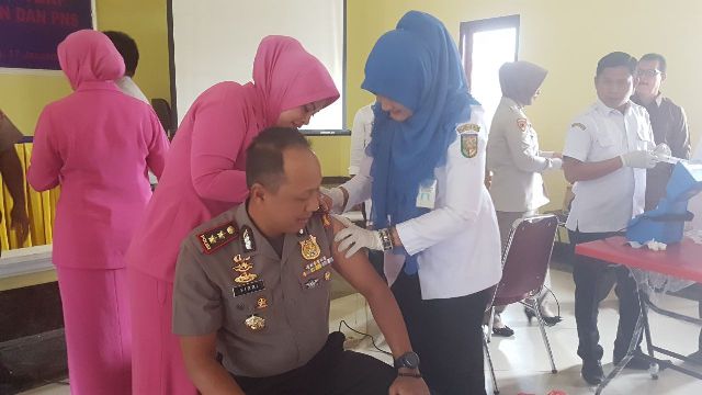 Cegah Penyakit Difteri, Kapolres Kuansing dan Personel Disuntik Vaksin