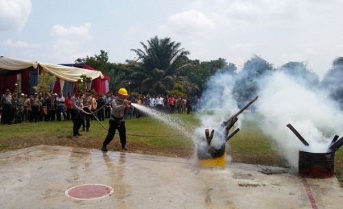 Singingi Hilir menampilkan simulasi pemadaman api di halaman kantor