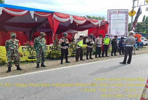 UJUNG TANJUNG, WARNARIAU.COM - Guna mengantisipasi terjadinya gangguan Keamanan, Keselamatan Ketertiban dan Kelancaran Berlalu Lintas (Kamseltibcar), Satgas Lantas Polres Rohil kembali lakukan patroli lalu lintas di perbatasan Riau - Sumut, Sabtu (2/1/2021) sekira pukul 08.30 WIB pagi kemarin.