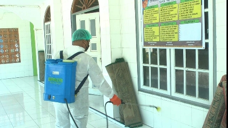 Tim Satgas Covid-19 yang terdiri dari TNI/Polri, Dinas Kesehatan, pihak kecamatan dan kelurahan/kepenghuluan telah melakukan penyemprotan cairan disinfektan di sejumlah masjid yang ada di Kota Bagansiapiapi.