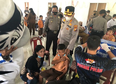 Kapolres Rohil Tinjau Vaksinasi Anak di SD Yayasan Pelita Kasih