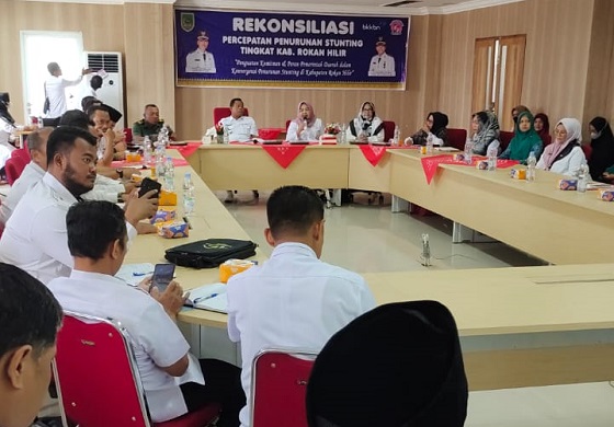 Acara rekonsiliasi stunting dihadiri Kepala dinas kesehatan, Dinas Sosial, Pengendalian Penduduk Keluarga Berencana, Badan Ketahanan Pangan, Dinas Pendidikab, Dinas Perumahan Kawasan Pemukiman, Dinas PUTR dan Dinas Pemberdayaan Masyarakat Desa, Kemenag dan KUA se Kabupaten Rokan Hilir, Dandim 0321 dan Kabid IKP Kominfo, Hasnul Yamin.