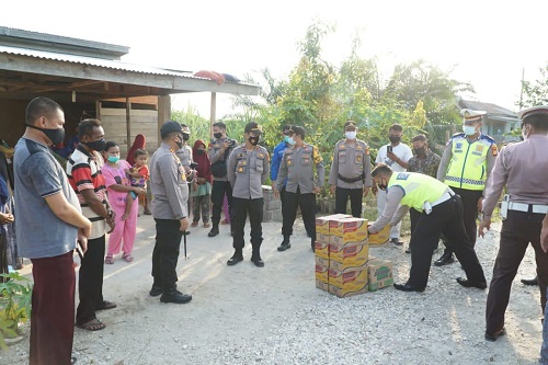 Kapolres Rohul Taufik Lukman Sambangi dan Bagikan Sembako Kepada Masyarakat Terdampak Bencana Banjir di Desa Sontang