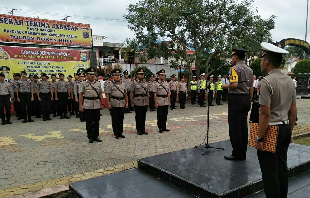 Sertijab ketiga perwira Polres Rohul dilakukan melalui apel dipimpin Kapolres Rohul AKBP Yusup Rahmanto SIK, MH, Sabtu (10/3/2018), dihadiri seluruh perwira dan personel di jajaran Polres Rohul.