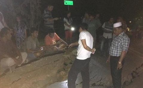 "Yang roboh itu sekitar 150 meter, kejadian sekitar pukul 18.40 wib tadi yang mengakibatkan jalan retak dan terbelah, "jelasnya. (cakaplah)
