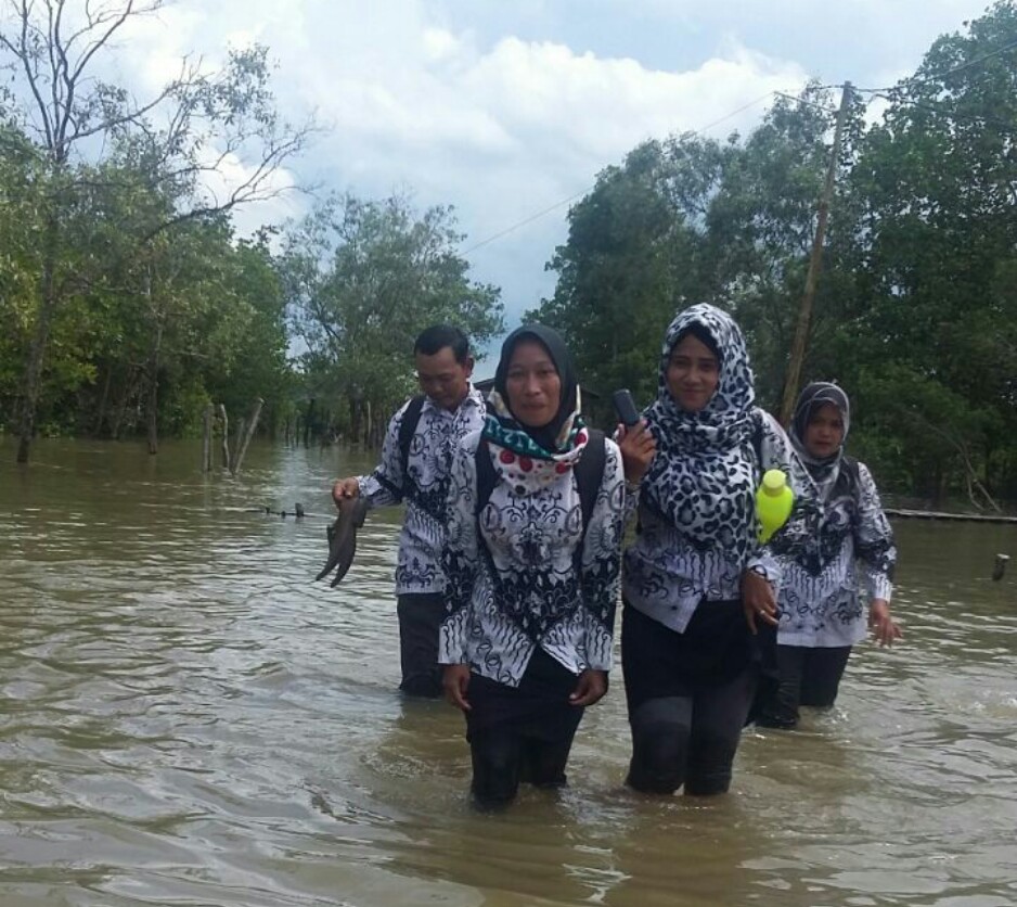 Guru Terobos Banjir Rob Demi Menuju Sekolah