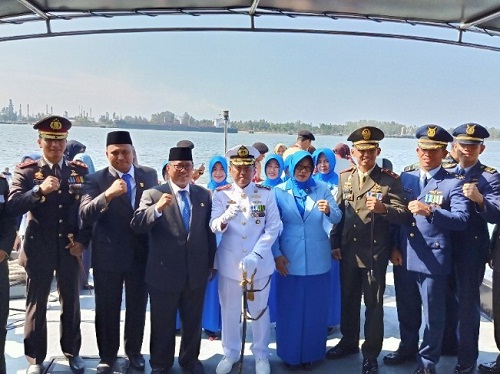 Suasana haru menyelimuti Kapal Angkatan Laut (Kal) Tedung milik Lanal Dumai tatkala lagu-lagu perjuangan mengiringi kegiatan tabur bunga sebagai penghormatan kepada para pahlawan.