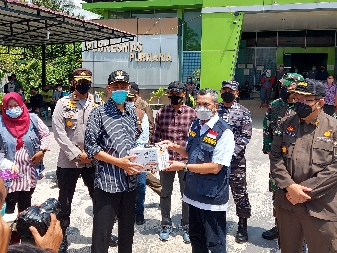 Selain menyerahkan 50.000 vaksin Sinovac, Gubernur juga memberikan bantuan 70 Pisces ice gel pack, 10 coolbox 5,5 liter dan 2 coolbox 22 liter dan 50 pisces pulse oxy metri.