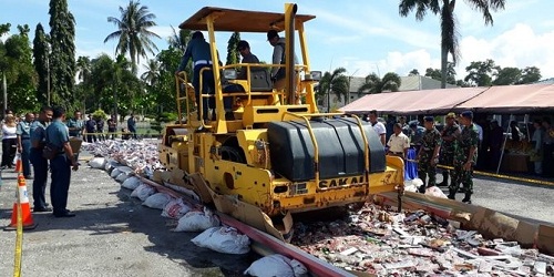 Barang bukti yang dimusnahkan terdiri dari rokok red 350 tim dan miras 829 kotak dengan rincian, antara lain muatan Speed Boat tanpa nama 145 kotak, muatan KM Aini (kapal tenggelam) sebanyak 368 kotak serta muatan KM Fasri sebanyak 316 kotak. (cakaplah)
