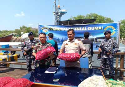 Lanal Dumai Amankan Kapal Muatan 9 Ton Bawang Merah Ilegal Asal Malaysia