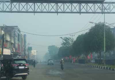 Sesuai data yang dirilis Badan Meteorologi, Klimatologi dan Geofisika (BMKG) stasiun Pekanbaru, jarak pandang di kota pelabuhan tersebut hanya berkisar tiga kilometer pagi tadi.