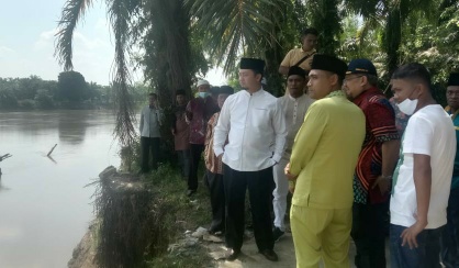 Siak Hulu - Anggota Komisi V DPR RI H Syahrul Aidi Maazat melakukan kunjungan kerja ke Desa Buluh Cina Kecamatan Siak Hulu Kabupaten Kampar. Hal itu untuk melihat secara langsung kondisi abrasi di Bulu Cina yang telah menghabiskan tanah warga hingga 100 meter dari bibir sungai.