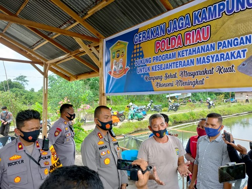 Saat jumpa pers dalam kegiatan panen ikan ini, Kapolres Kampar menyampaikan bahwa kegiatan ini sebagai implementasi program jaga kampung Polda Riau dan Program Kampung Tangguh Nusantara, program ini bertujuan untuk mendukung peningkatan ketahanan pangan pada masa Pandemi Covid–19.