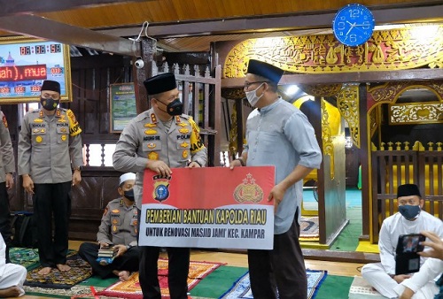 Usai menyampaikan sambutannya, Kapolda Riau menyerahkan bantuan untuk renovasi Masjid Jami' Air Tiris, yang diserahkan secara simbolis kepada pengurus Masjid Jami' Air Tiris, bantuan berupa Kubah Menara Masjid dan 100 Alquran.